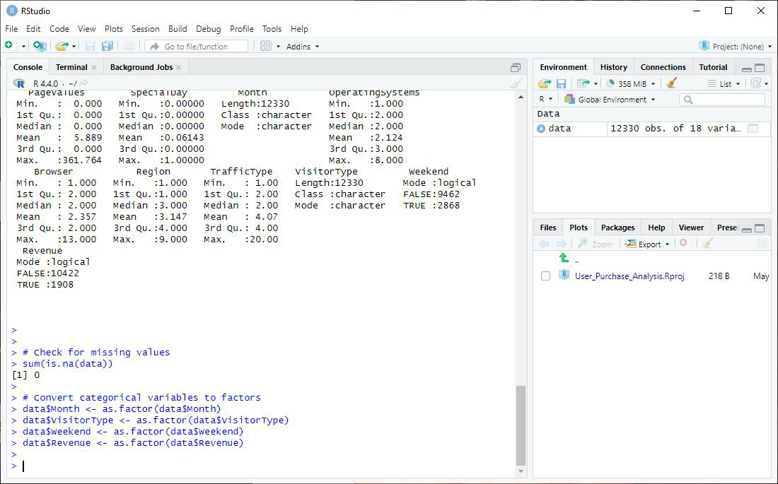 By following these steps, you have successfully analyzed factors influencing user purchases using the Online Shoppers Purchasing Intention Dataset. Woot, woot! You can celebrate. This tutorial not only demonstrated how to handle and clean data but also how to build a predictive model and create compelling visualizations in RStudio. These skills are crucial for any UX researcher aiming to leverage data to improve digital products. I hope that, as you went through this tutorial, you were envisioning how your own data would work in the real world.