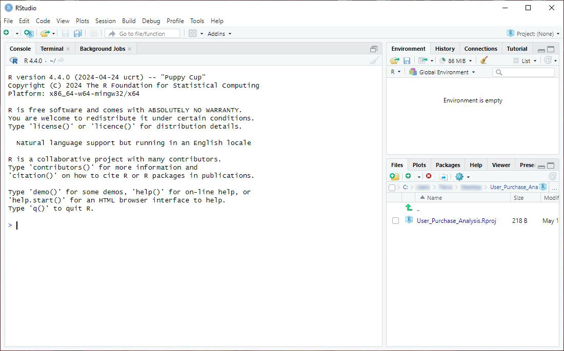 Name your project (e.g., "User_Purchase_Analysis") and choose a location on your computer