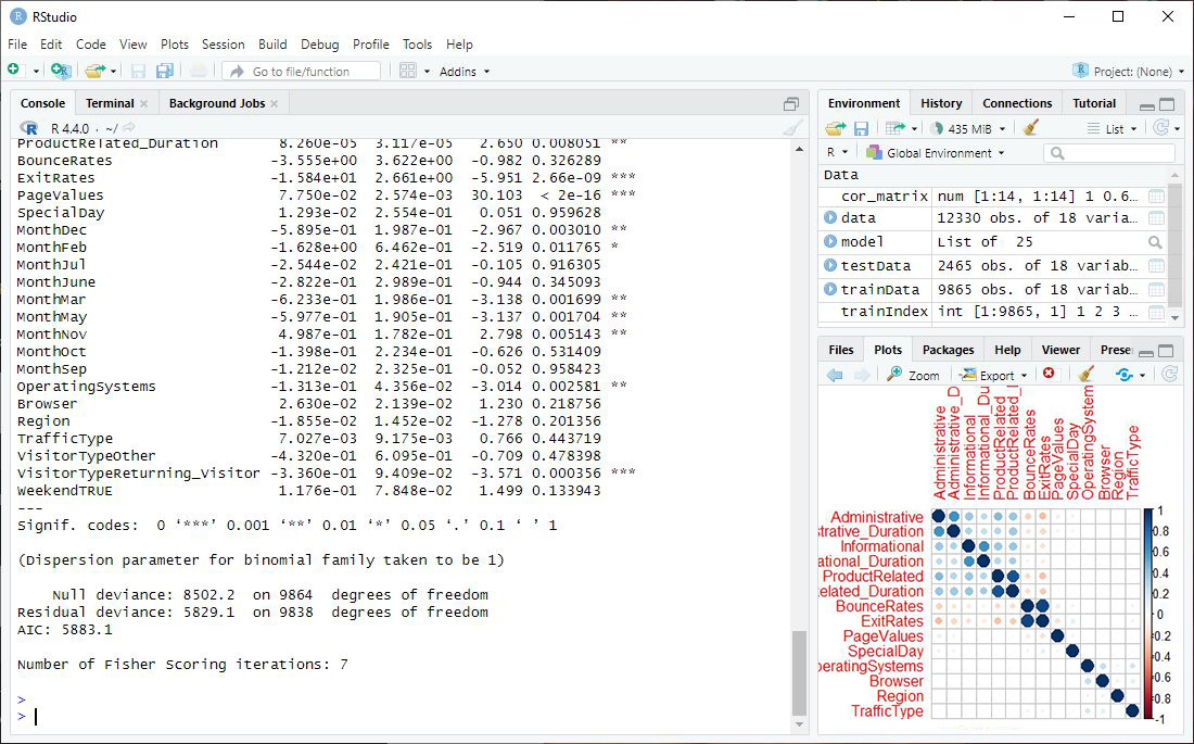 model <- train(Revenue ~ ., data = trainData, method = "glm", family = "binomial")