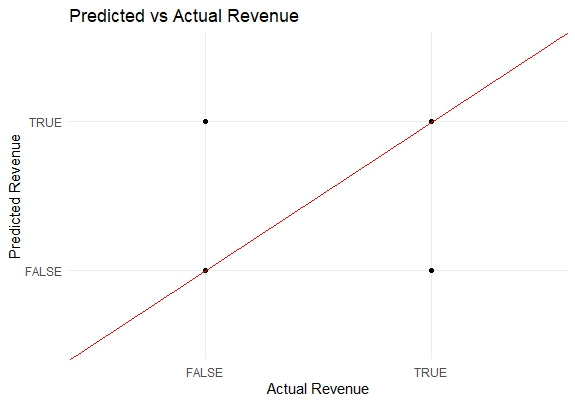 labs(title = "Predicted vs Actual Revenue", x = "Actual Revenue", y = "Predicted Revenue") +